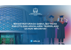 Die Anträge von Bewerbern, die sich online über das elektronische System my.edu.uz für die Zulassung zu den Masterstudiengängen staatlicher Hochschulen für das akademische Jahr 2025/2026 registriert haben, wurden geprüft.