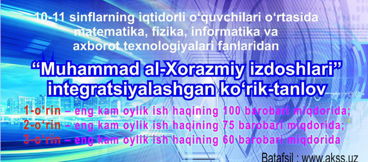 The integration competition in mathematics, physics, and computer science and information technologies "Followers of Al-Khwarizmi" among talented students of 10-11 grades of secondary schools has started.