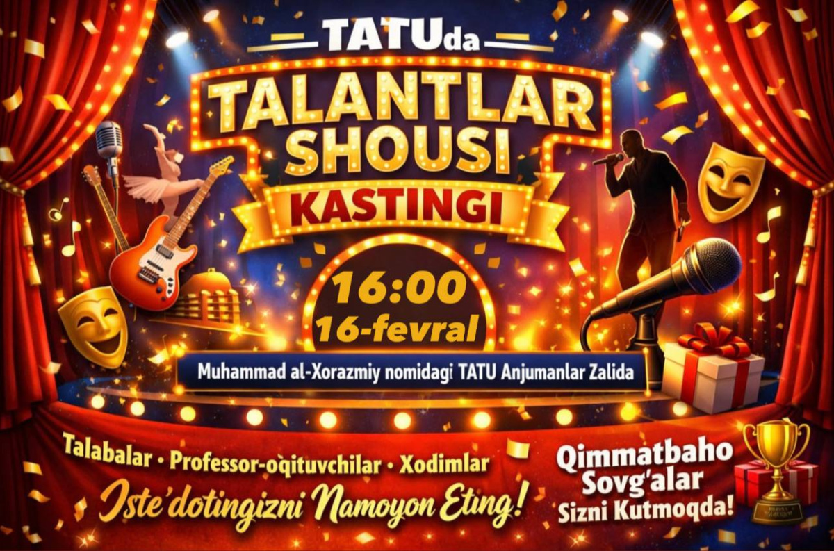 On February 16 this year, at 16:00, a Talents Show casting will be held in the conference hall of Tashkent University of Information Technologies named after Muhammad al-Khwarizmi.