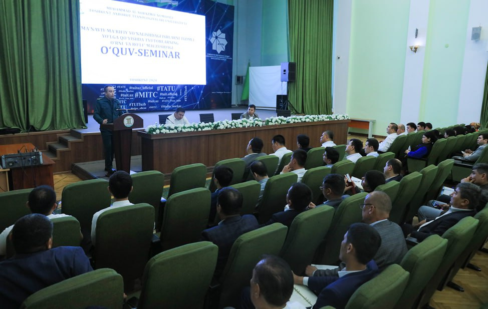 In order to improve the level of knowledge and qualifications of tutors working at the Tashkent University of Information Technologies named after Muhammad al-Khwarizmi, a seminar for tutors was held, organized by the department of spirituality and enlightenment as part of the 22nd day of training courses. The listeners were presented with the topics “Love of books and the culture of reading” and “Islam - the religion of enlightenment and goodness.”