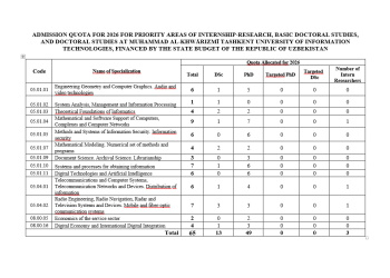 TASHKENT UNIVERSITY OF INFORMATION TECHNOLOGIES NAMED AFTER MUHAMMAD AL-KHWARIZMI announces the acceptance of documents for the 2026 academic year for full-time doctoral (PhD),