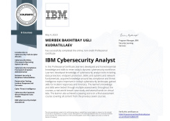 THE "IBM CYBERSECURITY ANALYST ASSESSMENT PROFESSIONAL" COURSE WAS ACCOMPLISHED AND THE RELEVANT INTERNATIONAL IT CERTIFICATE WAS OBTAINED