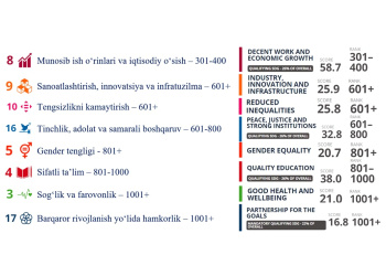 Tashkent University of Information Technologies named after Muhammad al-Khwarizmi was included in the The Impact Ranking 2022 for the first time.