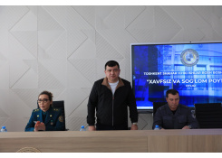 The event was attended by representatives of the Yunusabad District Department of Internal Affairs, including A. Djabbarov, G. Zarimova, and Kh. Suyunbayev.