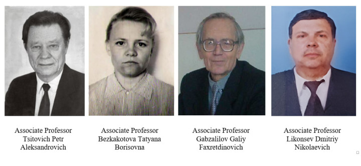 The successful organization of the department’s activities and educational process was significantly supported in various years by laboratory heads V.N. Vorobyev, T.A. Abidjanov, G. Makarenko, G. Gafurov, V. Klimushkin, F. Gafurov, and A.M. Ovchinnikov. Their initiative and dedicated efforts played an important role in developing the department’s material and technical base and in improving the educational process.