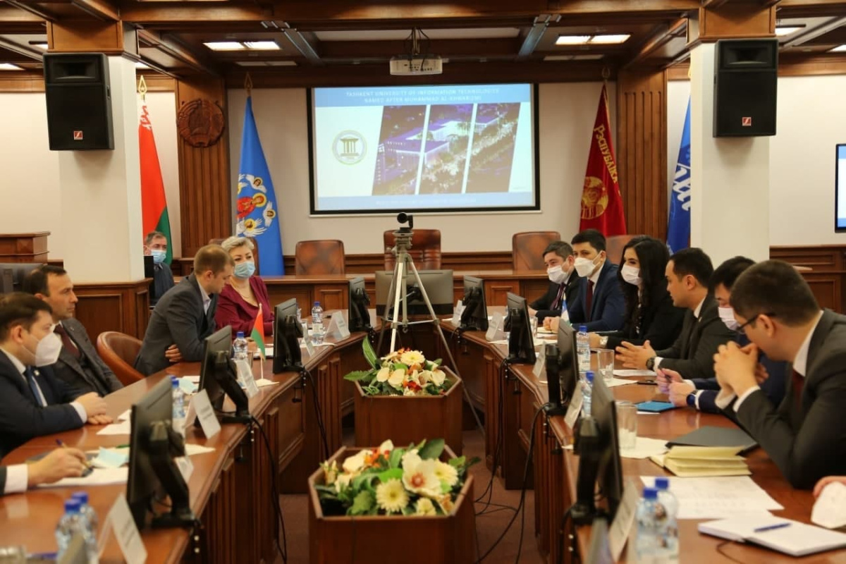 Muhammad Al-Xorazmiy nomidagi Toshkent axborot texnologiyalari universiteti rektori Maxkamov Baxtiyor Shuxratovich boshchiligidagi delegatsiya Belarus davlat informatika va radioelektronika universiteti rektori Bogush Vadim Anatol’yevich hamda ushbu universitet prorektorlari, dekanlari va tarkibiy bo‘lim rahbarlari bilan TATU-BDIRU qo‘shma axborot texnologiyalari fakulteti bo‘yicha bir qancha masalalarni muhokama qilish uchun uchrashdi.