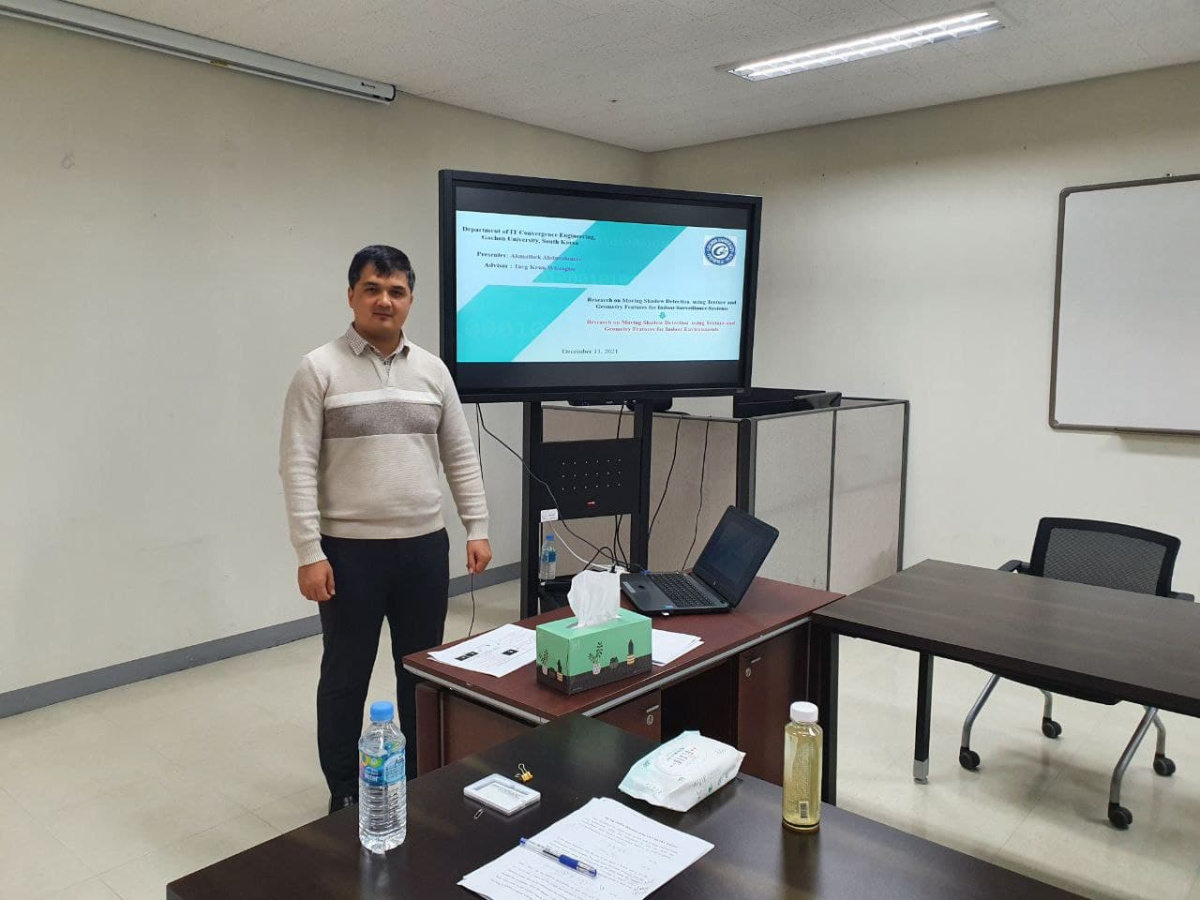 🎓Universitet vitse-prezidenti PhD Taegkeun Whangbo rahbarligida "Research on Moving Shadow Detection using Texture and Geometry Featurres for Indoor Environments" mavzusi bo‘yicha yuqori natijalar oldi.