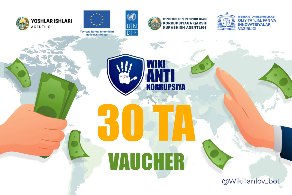 Yoshlarning huquqiy savodxonligini oshirish hamda xorijiy tillarni o‘rganishini qo‘llab-quvvatlash maqsadida 11–21-fevral kunlari “WikiAntiKorrupsiya” onlayn tanlovi bo‘lib o‘tadi.