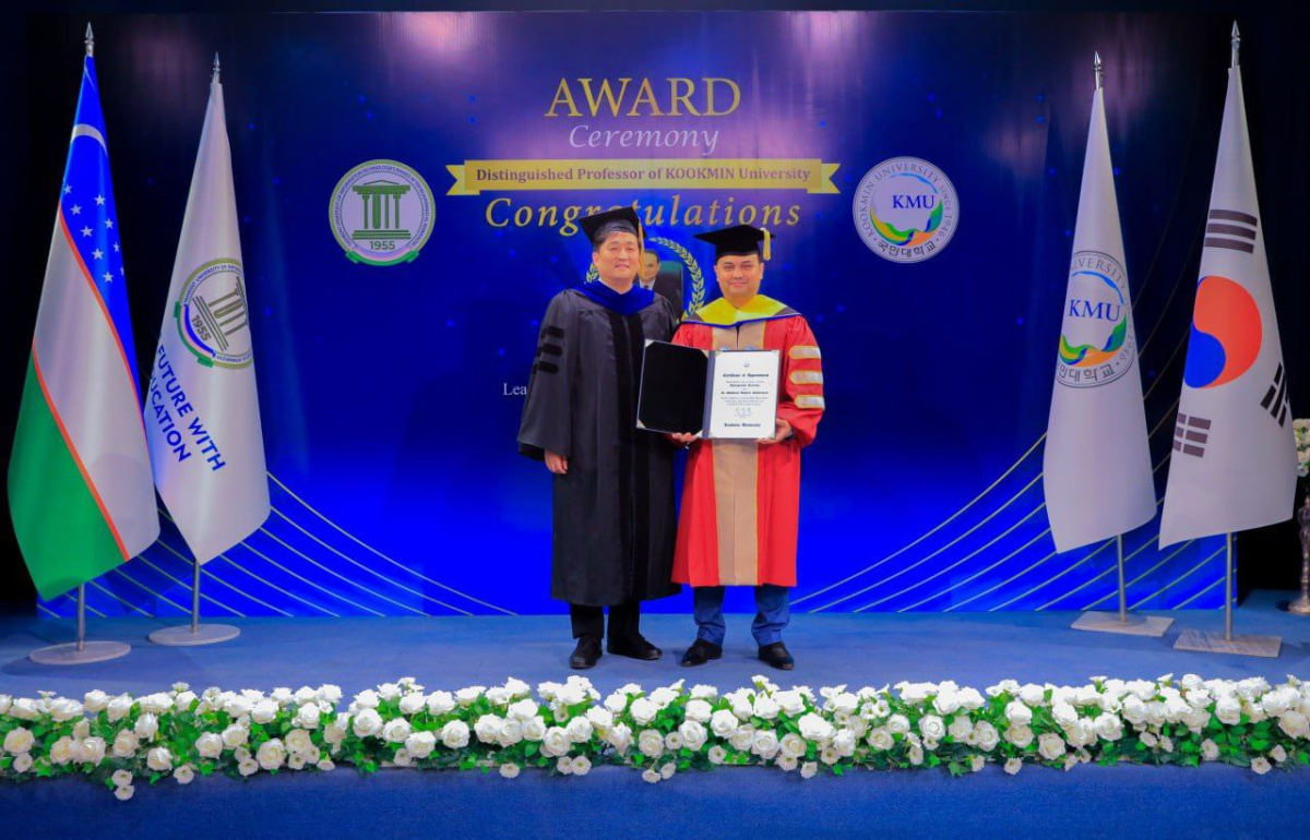 Muhammad al-Xorazmiy nomidagi Toshkent axborot texnologiyalari universiteti rektori, Iqtisod fanlari doktori, Prof. Maxkamov Baxtiyor Shuxratovich Janubiy Koreyaning yetakchi universitetlaridan biri Kookmin Universiteti "Faxriy professori" unvoni bilan taqdirlandi!