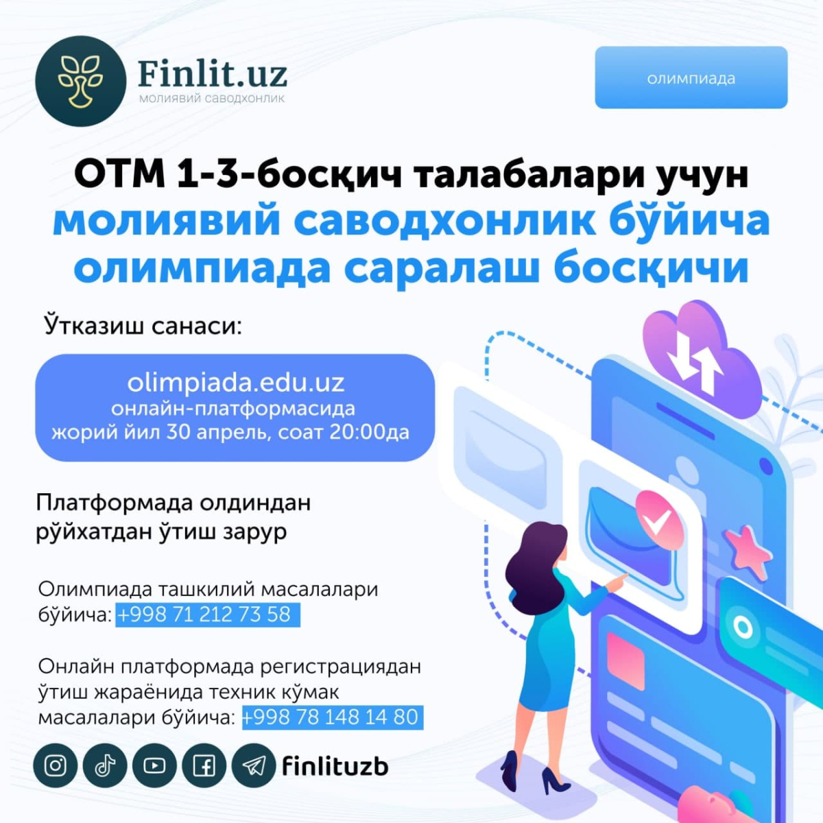 • Олий ўқув юртлари 1-3 босқич талабалари учун Молиявий саводхонлик бўйича олимпиада