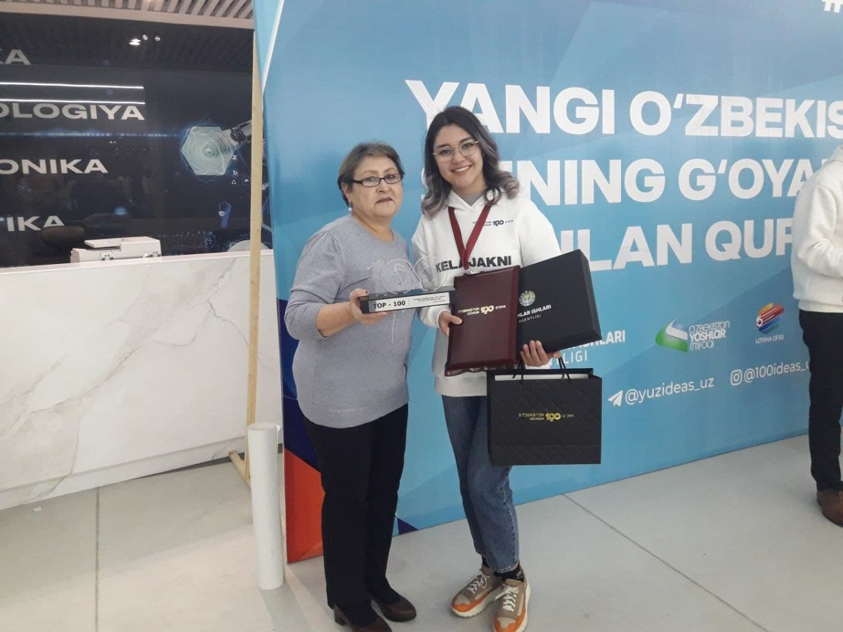 Shu bilan birga “O’zbekistonning eng ilg’or TOP 100 yoshlari qatoridan joy olib, pul mukofotlari, diplom va esdalik sovg’alar bilan taqdirlandi.