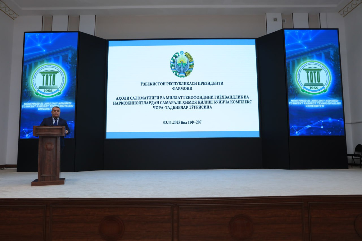 Muhammad al-Xorazmiy nomidagi Toshkent axborot texnologiyalari universitetida “Aholi salomatligi va millat genofondini giyohvandlik va narkojinoyatlardan samarali himoya qilish bo‘yicha kompleks chora-tadbirlar to‘g‘risida”gi PF-207-son Farmon ijrosini ta’minlash doirasida keng qamrovli profilaktik tadbir o‘tkazildi.