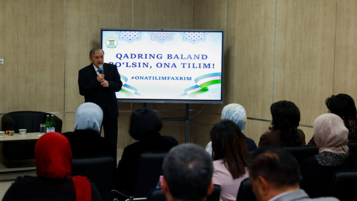 ✨ Tadbirda o‘zbek tilining tarixiy ildizlari, milliy o‘zligimizni ifoda etuvchi bebaho qadriyat sifatidagi o‘rni va ahamiyati haqida so‘z yuritildi. Shuningdek, davlat tilining jamiyat hayotidagi o‘rni, uni rivojlantirish va yoshlar ongida milliy g‘urur timsoli sifatida mustahkamlash yo‘lidagi sa’y-harakatlar haqida fikrlar bildirildi.