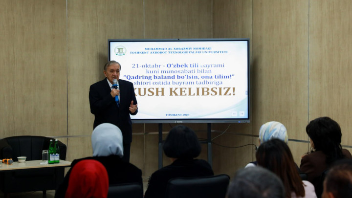Muhammad al-Xorazmiy nomidagi Toshkent axborot texnologiyalari universitetida 21-oktabr – O‘zbek tiliga davlat tili maqomi berilganligining 36 yilligi munosabati bilan “Qadring baland bo‘lsin, O‘zbek tilim!” mavzusida ma’naviy-ma’rifiy tadbir tashkil etildi.