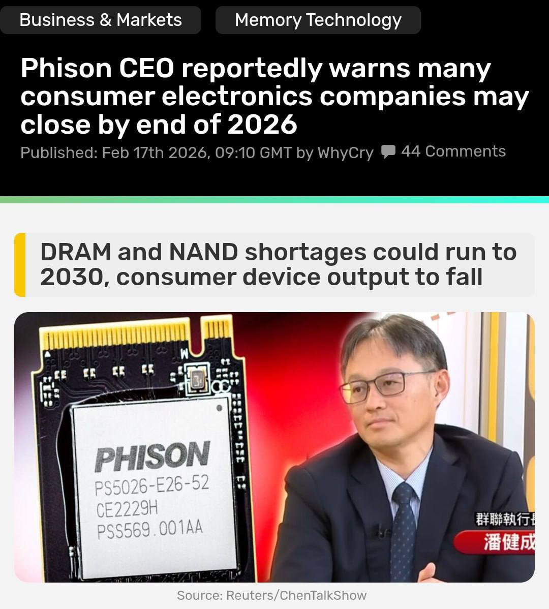 Tayvanning yirik kompaniyasi — Phison (SSD va flesh-xotira kontrollerlari ishlab chiqaruvchisi, mahsulotlaridan Kingston, Corsair, Patriot kabi brendlar foydalanadi) rahbari quyidagi bayonotni berdi: