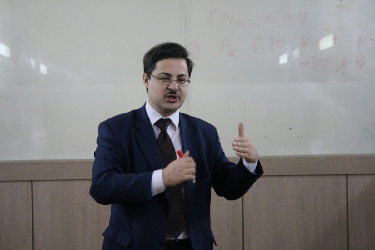 11 oktyabr kuni TATUning «Algoritmlash va matematik modellashtirish» kafedrasida boshqa universitetlarning turdosh kafedralari bilan xalqaro hamkorlik doirasida Lomonosov nomidagi Moskva Davlat universitetining dotsenti, f.m.f.n. Nikolay Yurevich Volkov ishtirokida ilmiy seminar o‘tkazildi. Seminarda N.Yu.Volkov “Дискретная математика: Бульева логика, к-значная логика, теория автоматов” mavzusida ma’ruza qildi. Shuningdek, seminar doirasida diskret matematika fanining rivojlanishiga hissa qo‘shayotgan olimlar, fanning zamonaviy yutuqlari, fanning ishlab chiqarish va mudofaa sohalarida qo‘llanilishi haqida fikr almashildi.