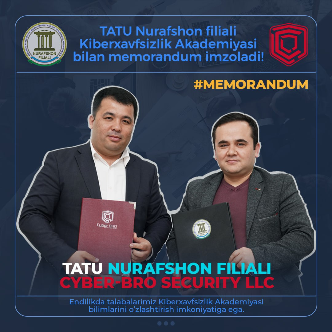 🤩 Muhammad al-Xorazmiy nomidagi Toshkent axborot texnologiyalari universiteti Nurafshon filiali direktori N.Nasrullayev va Kiberxavfsizlik sohasida samarali faoliyat olib borayotgan Cyber-Bro kompaniyasi vakillari bilan joriy yilning 13-mart kuni uchrashuv o‘tkazdi.