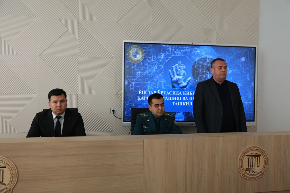 Tadbirda Toshkent shahar IIBB kiberxavfsizlik bo‘limi boshlig‘i, mayor Tillaxodjaev Bexzod Dilshod o‘g‘li, universitet rahbariyati, professor-o‘qituvchilar va talaba-yoshlar ishtirok etdilar.