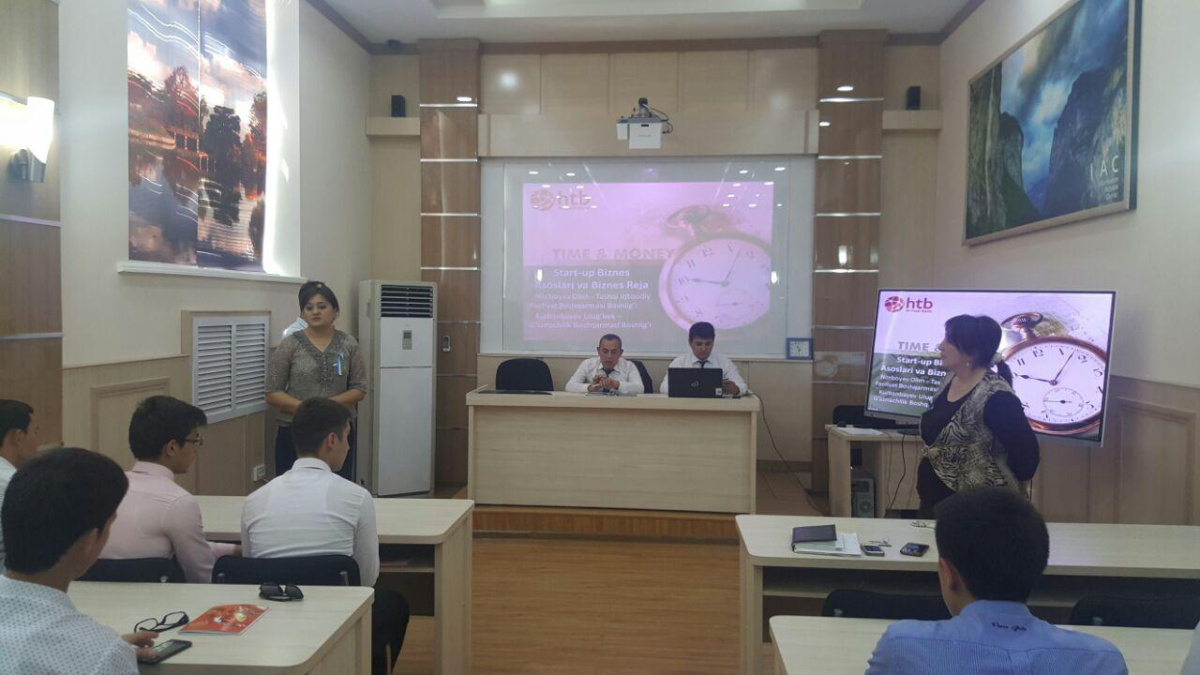 В рамках деятельности кружка “Молодой экономист” кафедры “Экономика в сфере ИКТ” факультета “Экономика и менеджмент в сфере ИКТ” Ташкентского университета информационных технологий имени Мухаммада ал-Хоразмий была организована встреча с банковскими сотрудниками. В очередной встрече приняли участие сотрудники банка “Hi-Tech Bank”, в частности начальник отдела внешнеэкономической деятельности О.Норбоев и управления казначейства У.Курбаналиев, которые дали подробные сведения о том, как начать свой бизнес и этапах его организации. В конце втречи студенты смогли получить ответы на интересующие их вопросы.