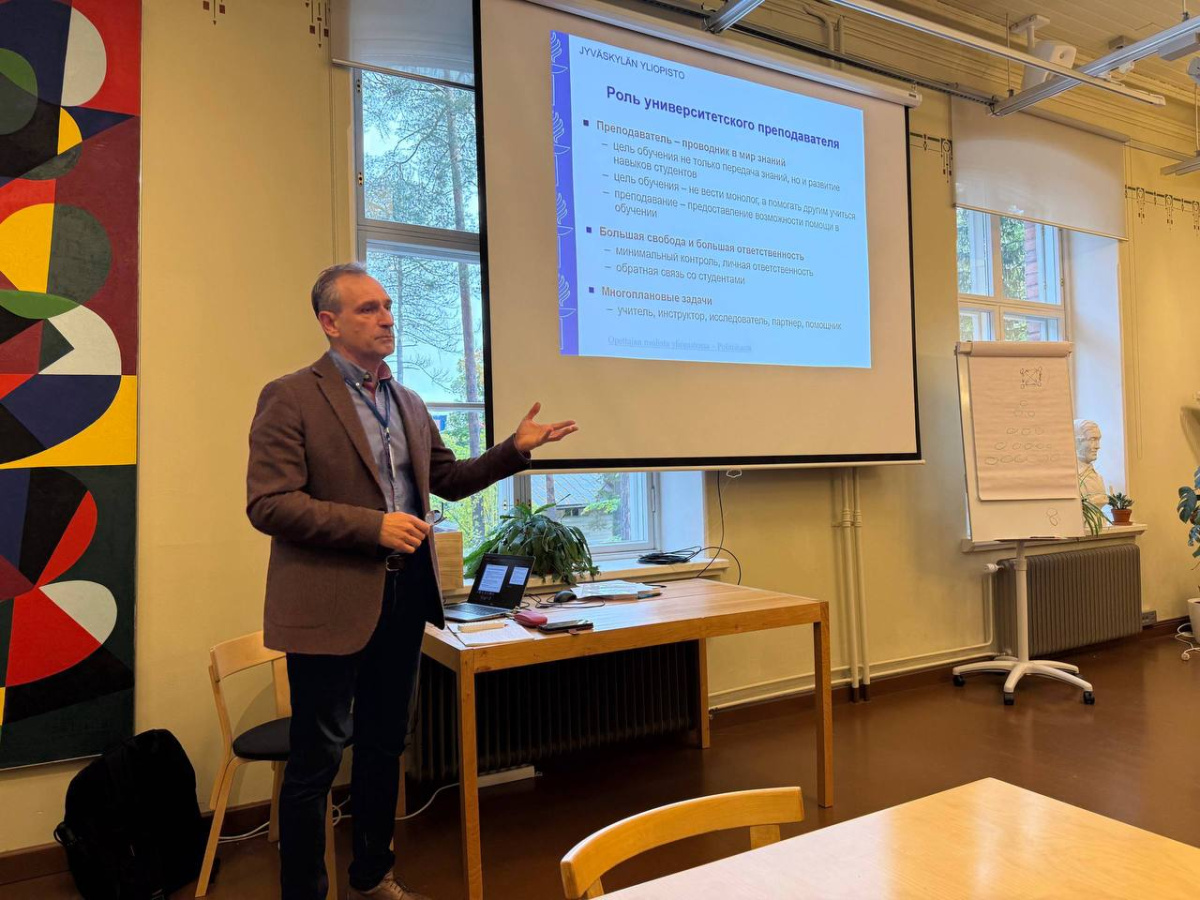 ✅Safar davomida ishtirokchilar dastlab, Jyväskylä universitetida pedagogik texnologiyalar va kasb mahorati bo‘yicha treninglarda qatnashishdi hamda taqdimotlar qilishdi.