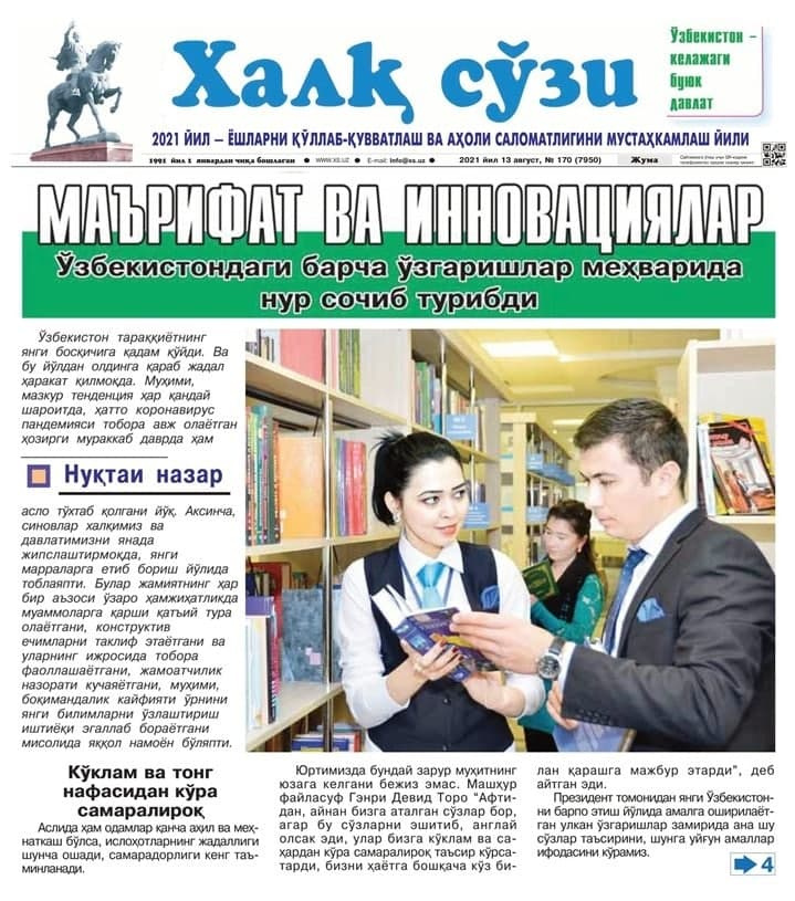 “Халқ сўзи” газетасининг бугунги(13.08.2021) сони