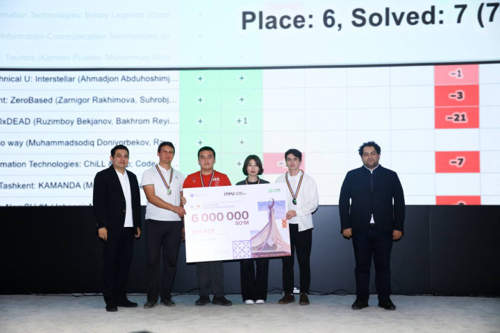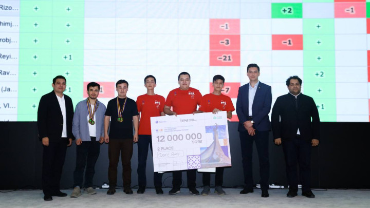 Oliy ta’lim muassasalari talabalari o‘rtasida o‘tkazilgan ICPC (International Collegiate Programming Contest) xalqaro dasturlash olimpiadasining respublika bosqichida g‘olib chiqqan jamoalar tantanali ravishda taqdirlandi. Musobaqada mamlakatimizdagi oliy ta’lim muassasalarining 202 ta talaba jamoasi ishtirok etdi.