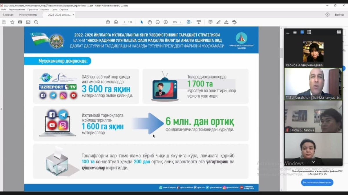 Muhammad al-Xorazmiy nomidagi Toshkent axborot texnologiyalari universiteti Xotin-qizlar kengashi tomonidan "Yoshlarni oilaviy hayotga tayyorlash, ularga oiladagi nizoli holatlarni hal qilishning huquqiy va psixologik asoslarini o‘rgatish, oilalarni mustahkamlash, erta nikoh va oiladagi ajrashishlarning oldini olish" mavzusida onlayn seminar bo‘lib o‘tdi.