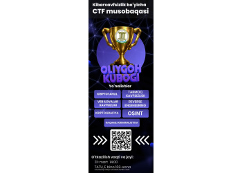 🏛 Raqamli texnologiyalar sohasida o‘tkazilayotgan “Oliygoh kubogi” musobaqalari doirasida Kiberxavfsizlik bo‘yicha CTF olimpiadasining FINAL bosqichi bo‘lib o‘tadi.