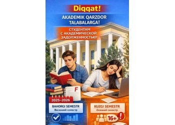 2025/2026 o‘quv yilining bahorgi semestri davomida akademik qarzdorligi mavjud bo‘lgan talabalar uchun fanlarni qayta o‘qish jarayoni tashkil etiladi.