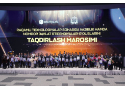 2025/2026-o‘quv yili uchun bakalavriat bosqichi bo‘yicha O‘zbekiston Prezidenti davlat stipendiyasi hamda nomli davlat stipendiyalari sohiblariga Raqamli texnologiyalar vaziri Sherzod Shermatov tomonidan guvohnoma va sertifikatlar tantanali ravishda topshirildi.