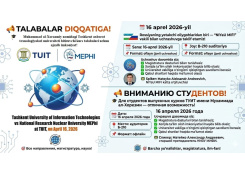 Muhammad al-Xorazmiy nomidagi Toshkent axborot texnologiyalari universiteti va hududiy filiallari sizlarni talabalar almashinuvi dasturida (students exchange program) qatnashishga taklif etadi.