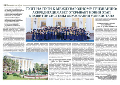 Bugun 17-dekabr kuni "Правда востока" gazetasining 261-sonida Muhammad al-Xorazmiy nomidagi Toshkent axborot texnologiyalari universiteti Ta’lim sifatini nazorat qilish bo‘limi boshlig‘i, texnika fanlari doktori, professor Sherzod G‘ulomovning "ТУИТ НА ПУТИ К МЕЖДУНАРОДНОМУ ПРИЗНАНИЮ:АККРЕДИТАЦИЯ ABET ОТКРЫВАЕТ НОВЫЙ ЭТАП В РАЗВИТИИ СИСТЕМЫ ОБРАЗОВАНИЯ УЗБЕКИСТАНА" nomli maqolasi chop etildi.