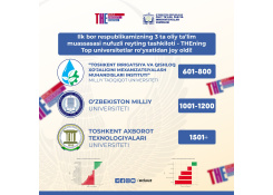 Buyuk Britaniyaning nufuzli Times Higher Education xalqaro reyting tashkiloti World University Rankings-2025 TOP-1000 oliy ta’lim tashkilotlari ro‘yxatini e’lon qildi.