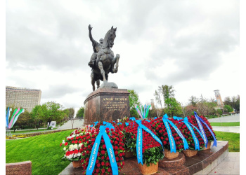 Vazirliklar a'zolari, oliy taʼlim muassasalari jamoasi sohibqiron haykali poyiga gullar qoʻyib, uning xotirasiga hurmat bajo keltirdi.