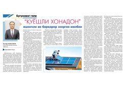 B.Maxkamovning "Quyoshli xonadon" ishonchli va barqaror energiya manbai nomli maqolasi chop etildi.