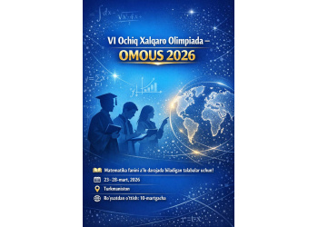 Turkmaniston ta’lim vazirligi hamda Xalqaro gumanitar fanlar va taraqqiyot universiteti murojaatiga asosan, 2026-yil 23–28-mart kunlari Turkmanistonda matematika fani bo‘yicha VI Ochiq Xalqaro Olimpiada (OMOUS-2026) bo‘lib o‘tadi.