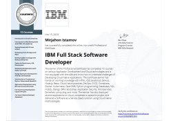 “IBM Full Stack Software Developer" kursini muvaffaqiyatli tugatib, tegishli xalqaro IT- sertifikatga ega bo'ldi va ushbu imkoniyatni qo'lga kiritdi.