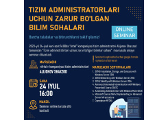 2023-yil 24-iyul kuni soat 16:00da “Artel” kompaniyasi tizim administratori Alijonov Shaxzod tomonidan “Tizim administratorlari uchun zarur bo‘lgan bilimlar sohasi” mavzusida onlayn seminar o‘tkaziladi.