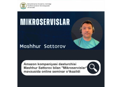 Joriy yilning 18-mart kuni Muhammad al-Xorazmiy nomidagi Toshkent axborot texnologiyalari universitetida Amazon kompaniyasi dasturchisi Mashhur Sattorov bilan "Mikroservislar" mavzusida online seminar o‘tkazildi