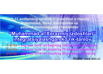 10-11 sinflarning iqtidorli o’quvchilari o’rtasida matematika, fizika, informatika va axborot texnologiyalari fanlaridan "Al-Xorazmiy izdoshlari integratsiyalashgan ko’rik-tanloviga start berildi!