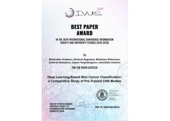 2025-yil 15-may kuni Litvaning Kaunas shahrida o‘tkazilgan 30-Xalqaro “Information Society and University Studies (IVUS 2025)” konferensiyasida universitetimiz doktorantlari e’tirof etildi.