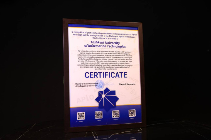 Пользуясь случаем, коллектив ТУИТ выражает искреннюю благодарность Министру цифровых технологий Республики Узбекистан Шерзоду Шерматову за постоянную поддержку и внимание.