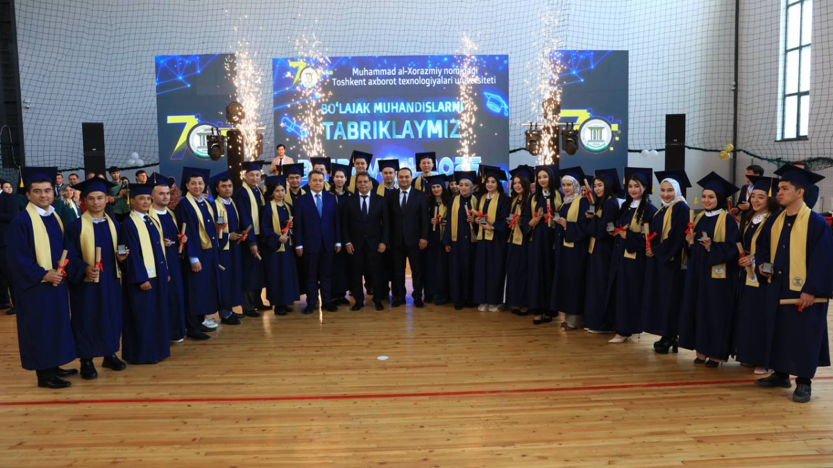 ✅ Наши выпускники получили символические дипломы из рук Министра цифровых технологий Шерзода Шерматова, Министра высшего образования, науки и инноваций Кўнғиротбоя Шарипова, а также ректора ТУИТ Бахтияра Махкамова.
