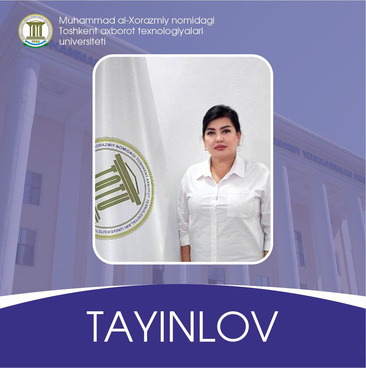 Муратова Лолахон Халикуловна - назначена на должность юрисконсульта Ташкентского университета информационных технологий имени Мухаммада аль-Хорезми.