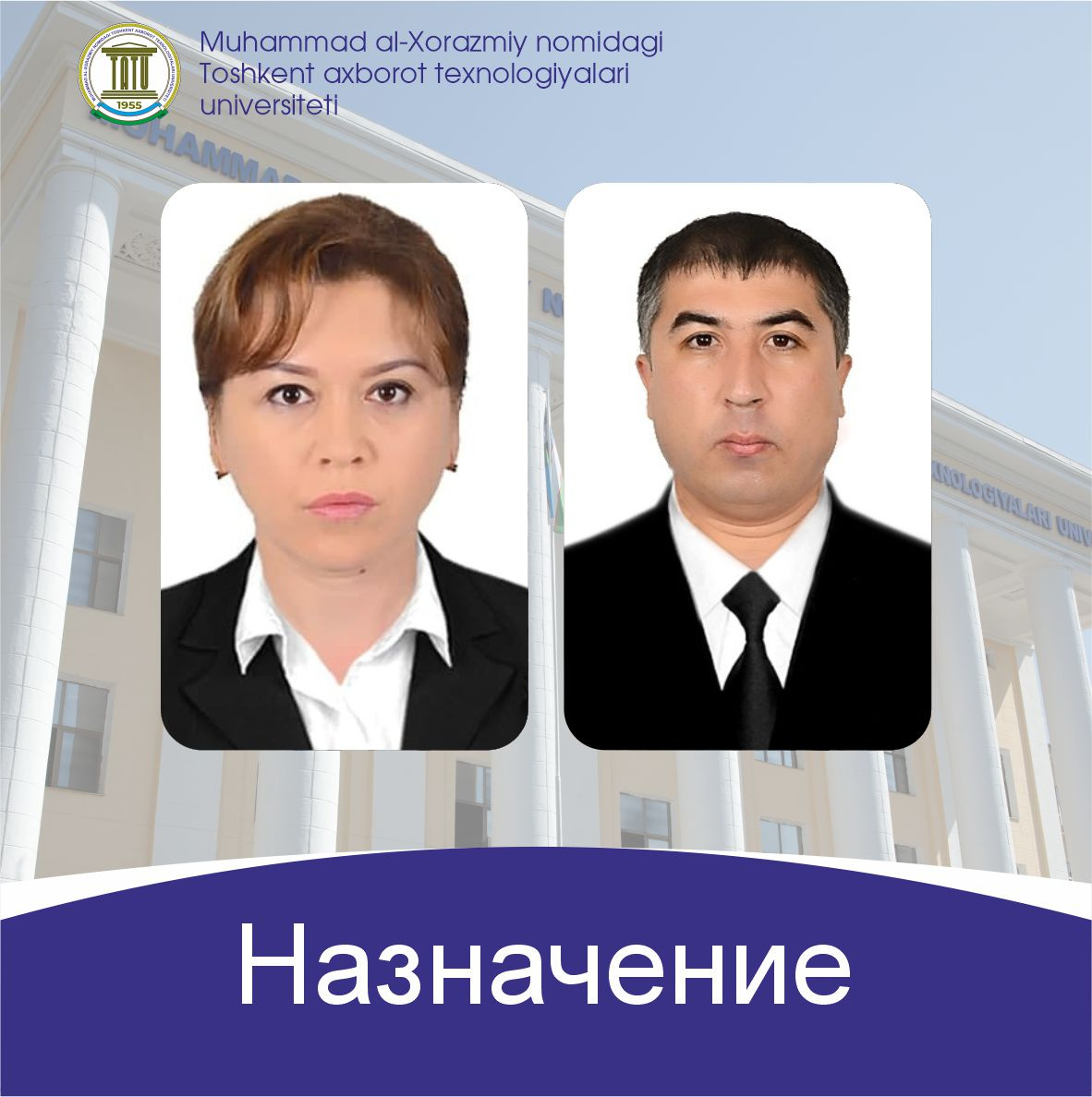 💐От имени руководства университета поздравляем Шерзода Раджабоевича и Дурдону Якубджановну с новыми ответственными обязанностями и желаем удачи в дальнейшей работе!