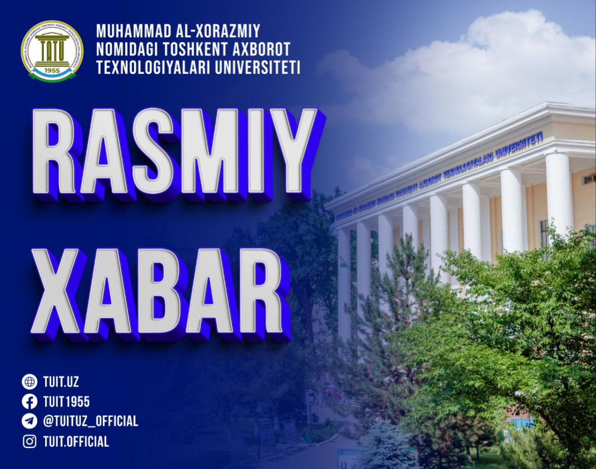 - В связи с возникающими у наших студентов трудностями в распределении времени, с учётом их предложений, финальные этапы соревнований в рамках "Кубка вуза" и выставка научно-инновационных технологий "Технологии будущего – Made in TUIT" были перенесены с 7 апреля на более подходящее время.