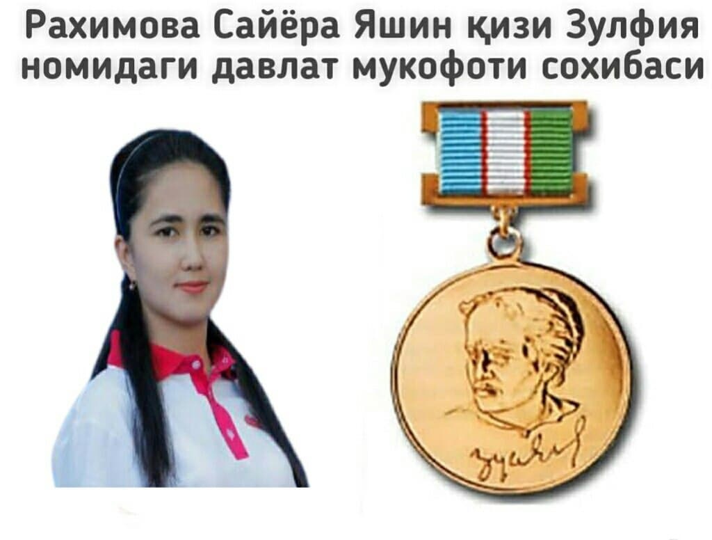 Студентка 4 курса факультета Компьютерный инжиниринг Ташкентского университета информационных технологий имени Мухаммада ал-Хоразмий Рахимова Сайёра удостоена Государственной награды имени Зульфии!