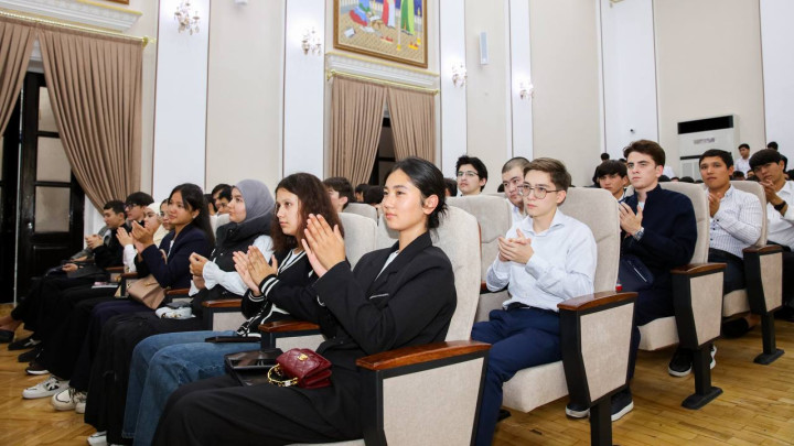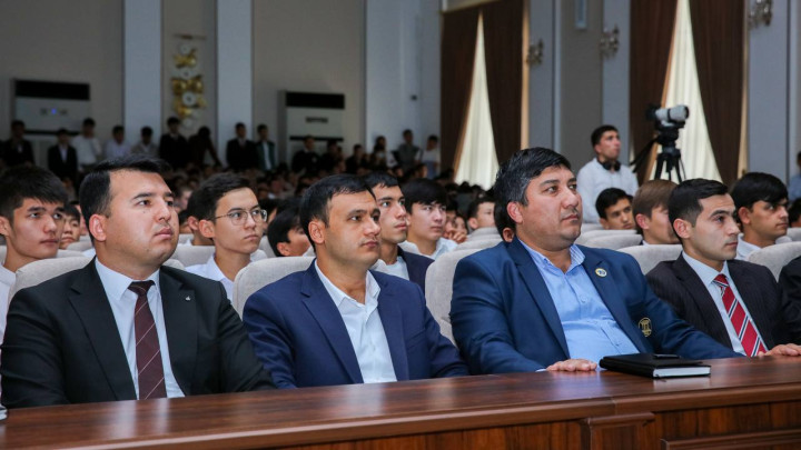 🇺🇿 На встрече с докладами выступили первый проректор по работе с молодежью и духовно-просветительской работе Д. Яхшибаев, руководитель Центра карьеры Дж. Махмудов, руководитель отдела управления системой контроля соответствия М. Мирёкубов, руководитель отдела организации научно-исследовательской деятельности талантливых студентов Г. Ахмеджанова, руководитель отдела организации учебного процесса И. Набиев и руководитель студенческого офиса А. Шахобиддинов. Также был показан видеоролик о достижениях университета за последние годы и изменениях, внедряемых в систему образования. В конце встречи студенты получили ответы на все интересующие их вопросы.
