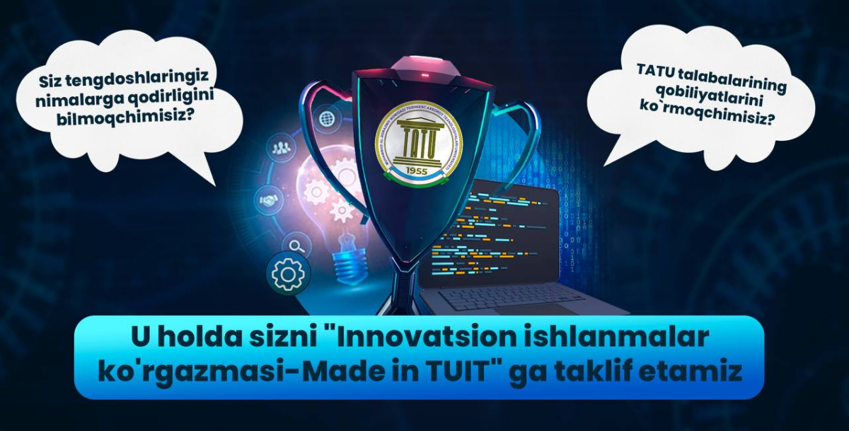 7 апреля текущего года в 10:00 в Ташкентском университете информационных технологий имени Мухаммада аль-Хоразмий состоится научно-инновационная выставка технологий «Технологии будущего» – Made in TUIT, где будут представлены идеи, разработки и решения студентов и исследователей.