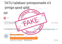 Сегодня в различных социальных сетях, а также в некоторых Telegram-каналах появилось фейковое сообщение о том, что "студент-ТУИТ покончил жизнь самоубийством в общежитии". Это сообщение было ложным и пришло с неподтвержденного канала. Уважаемые подписчики официального канала вуза-просим вас не поддаваться на такие необоснованные и неподтвержденные сообщения. Советуем получать новости из жизни нашего вуза только с нашего официального канала.